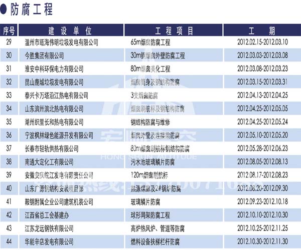 - 宏順建設核心技術 宏順建設專業(yè)承接各種煙囪新建,磚煙囪新建,煙囪防腐,煙囪滑膜,煙囪改造,煙囪內壁防腐,煙囪脫硫防腐等工程,有多年的成功經驗...解詳情